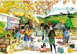 Scopri una serie di quattro illustrazioni dettagliate che catturano momenti di gioia con i cani – dalle passeggiate nella natura al calore della famiglia. Ogni puzzle misura circa 49 × 34 cm e offre una scena ricca di colori con stampa di qualità che evidenzia i dettagli sottili e le tonalità vivaci. L’incastro è fluido e appagante grazie ai tagli precisi.