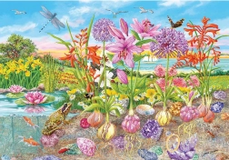 Ogni puzzle cattura un diverso aspetto della primavera e del giardino — dai fiori in piena fioritura alla vita attorno allo stagno. Ideale per gli amanti delle illustrazioni ricche di dettagli.