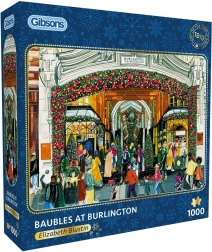 Il puzzle "Decorazioni a Burlington" di Gibsons cattura l’atmosfera natalizia nella Burlington Arcade di Londra. L’illustrazione è di Elizabeth Blustin, che rappresenta una galleria riccamente addobbata con decorazioni e luci natalizie. Una volta composto, il puzzle misura 68 x 49 cm e offre spazio sufficiente per apprezzarne i dettagli.