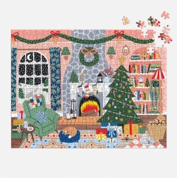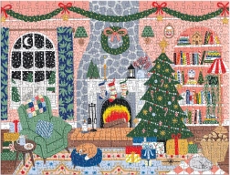 Una scena serena con albero di Natale, camino e pacchi regalo illumina la casa e ti mette nello spirito delle feste. Il puzzle finale misura circa 58,4 × 44,5 cm – ideale da esporre.