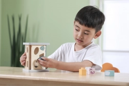 Il giocattolo è realizzato in legno verniciato di alta qualità e colorato con vernici atossiche e sicure nelle moderne tonalità polari. Ideale per il gioco quotidiano a casa e nelle scuole dell’infanzia: la struttura resistente, i bordi lisci e il design studiato favoriscono lo sviluppo della fantasia e della creatività.