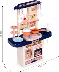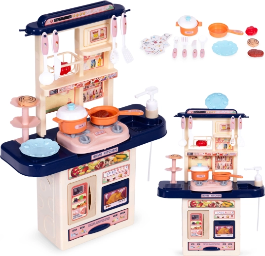 Elegante cucina giocattolo per piccoli chef con effetti sonori e luminosi, lavello funzionante con rubinetto, manopole girevoli con clic e antine apribili. Inclusi 10 accessori tra cui pentola, padella e alimenti. Favorisce creatività, abilità manuali e apprendimento attraverso il gioco, incluso il riciclo dei rifiuti grazie ai puzzle in dotazione.