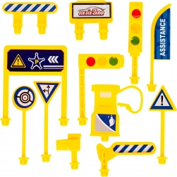 Incluso un set di segnali stradali e sbarre per una gestione sicura e per imparare le regole del traffico in modo giocoso.