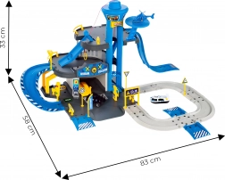 Il garage della polizia a tre livelli è il gioco ideale per i piccoli guidatori. Grazie all’ascensore mobile i veicoli raggiungono facilmente ogni piano, sul tetto c’è un eliporto per le azioni rapide dell’elicottero e non mancano rampe, sbarre e segnaletica per un gioco realistico. Nella confezione sono inclusi 2 automobiline e un elicottero, così i bambini possono iniziare a giocare subito.