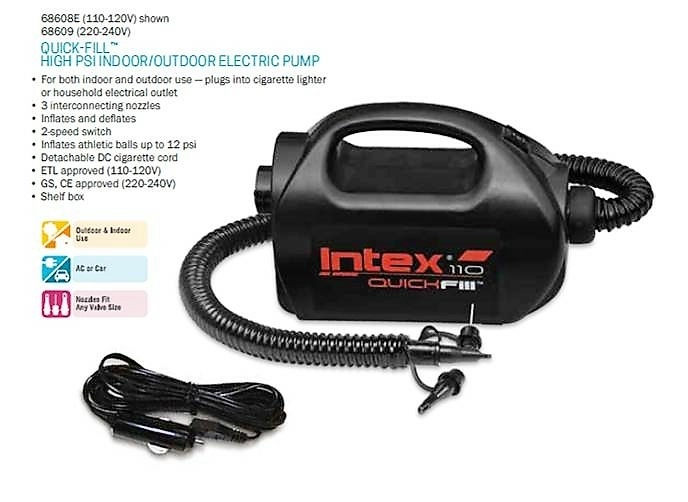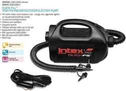 La pompa elettrica universale Intex Quick-Fill velocizza la preparazione di materassi, piscinette, gommoni e altri prodotti gonfiabili. La doppia alimentazione 12 V/230 V consente l’uso sia in casa sia in auto durante vacanze o campeggio. Il corpo compatto con pratica maniglia e il tubo flessibile facilitano la manipolazione.
