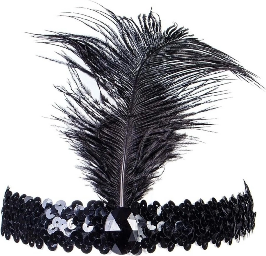 Fascia con paillettes e piuma. Una decorazione perfetta per feste di ogni tipo. La comoda fascia si adatta bene alla forma della testa. La piuma è realizzata in materiale morbido e piacevole al tatto. La fascia è decorata con bellissime paillettes lucenti. La fascia non può mancare in nessuna festa in maschera.