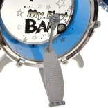 Nella confezione trovi una grande grancassa con pedale, due tamburi medi e due piccoli, un piatto metallico, uno sgabello e un paio di bacchette. Il set è confezionato in una scatola di cartone ed è pronto a far felice ogni piccolo batterista.