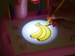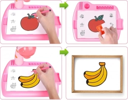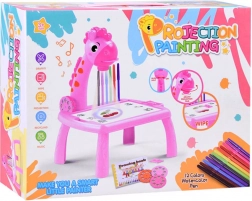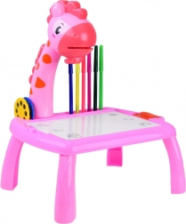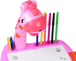 Il tavolino da disegno con proiezione a forma di giraffa è ideale per i piccoli artisti. Il proiettore proietta le immagini sulla superficie da disegno, che il bambino può facilmente ricalcare e colorare. Grazie alle dimensioni compatte, la tavoletta può essere usata sul tavolo oppure montata sui piedini inclusi come mini tavolino da disegno per bambini.