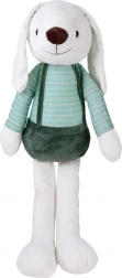 Il coniglio di peluche con eleganti salopette è il compagno perfetto per la cameretta. Grazie alla superficie morbidissima, è ideale per le coccole quotidiane, la lettura di fiabe insieme e un sonno sereno. La maglietta a righe e i pantaloni con bretelle conferiscono al giocattolo un aspetto incantevole e senza tempo.