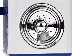 - Pannello con interruttore accendi/spegni, porta di ricarica e connettori per cuffie, microfono e MP3.