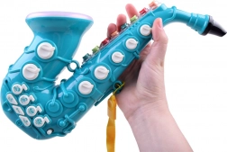 Questo colorato sassofono per bambini sviluppa il senso del ritmo, l’orecchio musicale e la motricità. All’accensione accoglie il bambino con una melodia allegra e si illuminano gli elementi retroilluminati. Si possono ascoltare brani preimpostati oppure creare i propri – soffiando nel bocchino e premendo i tasti come su un vero strumento.