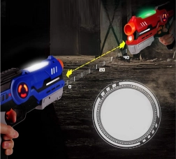 Le pistole laser consentono un gioco "di guerra" sicuro in cui il rischio di colpirsi o farsi male è minimo. Anche per questo le pistole laser sono usate nei giochi per bambini.Â