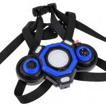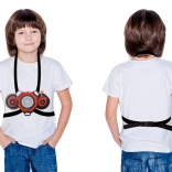 Next si dovrebbe attivare il giubbotto-mirino puntando la pistola verso la sua asta e premendo il grilletto per accoppiarla. Quando il mirino lampeggia nello stesso colore dell'arma, significa che l'arma è stata accoppiata correttamente. Il giubbotto è fissato con cinghie regolabili.