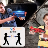 Prima di iniziare il gioco, dovrai effettuare le impostazioni sulla pistola e accoppiarla con il tuo giubbotto. L'arma si attiva con un pulsante scorrevole arancione. Quando lo si sposta in posizione ON, si sente il suono e si vede una luce lampeggiante. Successivamente, dovrete codificare l'arma selezionando il colore del vostro team. Premendo il pulsante con la lettera B si seleziona il colore: rosso, verde, blu o bianco. Se non piace, si può cambiare. La battaglia è possibile solo tra giocatori di colori opposti. Per confermare il colore selezionato è necessario muovere un elemento grigio mobile. Il passo successivo è la scelta dell'arma tramite pulsante con la lettera A. Ci sono 3 tipi di armi, diversi per tipo di suono emesso allo sparo, numero di colpi in un round e numero di danni inflitti all'avversario dopo un successo. Le armi si scelgono con il numero corrispondente di pressioni del pulsante (una pressione pistola numero 1, 2 pressioni pistola numero 2 e così via). La scelta finale dell'arma è confermata muovendo il cursore grigio. Questo ingaggio è responsabile per il rifornimento dei proiettili laser 'esauriti'. L'esaurimento dei proiettili è segnalato con un suono caratteristico di caricatore vuoto.