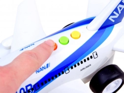 - effetti sonori in inglese e luci lampeggianti, rumore dei motori dell’aereo