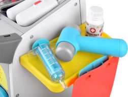 Il set sviluppa la motricità fine, l’immaginazione e le abilità sociali durante il gioco con gli amici. La struttura su ruote consente di spostare “l’ambulatorio” nella stanza e avere sempre tutti gli strumenti medici a portata di mano.