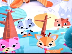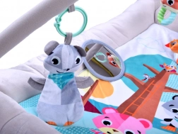 Il set comprende animaletti in tessuto con diverse texture e suoni, un sole con melodia rilassante, uno specchietto e un morbido cuscinetto per sostenere la testolina o durante il tempo a pancia in giù. Il tappetino favorisce il riconoscimento di forme e colori, l’apprendimento di causa–effetto e la coordinazione dei movimenti.