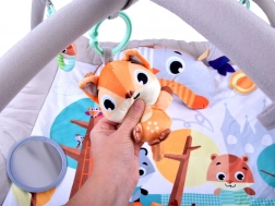 Tappetino da gioco morbido e confortevole con palestrina, offre uno spazio sicuro e stimolante per il gioco e il riposo. Include giochi sospesi con effetti sensoriali, specchietto sicuro, morbidi bordi rialzati e cuscinetto di supporto per il comfort del bebè. Favorisce lo sviluppo della motricità fine e grossa, la coordinazione occhio–mano e la percezione sensoriale.