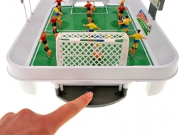 Organizza il tuo mondiale sul tavolo! Il calcio da tavolo con controllo a molla offre un gioco dinamico, regole semplici e tante emozioni. I giocatori sono disposti secondo la tua tattica: lancia la pallina e si parte.