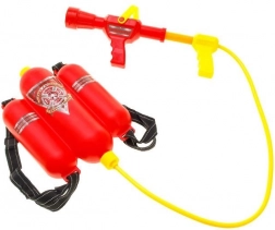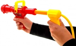 Tre serbatoi sulla schiena, tubo e pistola: basta riempire d’acqua e pompare. Ideale per il divertimento all’aperto e per un “spegnimento” sicuro degli incendi finti.