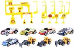 Inclusi 5 auto, 3 macchine da cantiere e segnaletica stradale. I bambini possono creare un mondo completo con parcheggio, stazione di servizio ed elementi stradali.