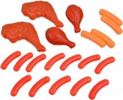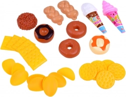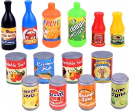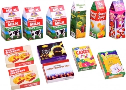 Pezzi fedelmente riprodotti come cosce di pollo, salsicce, gelati, biscotti o confezioni di succhi stimolano la creatività e l’imitazione degli adulti in cucina e nel negozio.