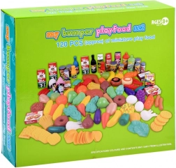 Un colorato set di alimenti giocattolo con circa 120 pezzi trasforma ogni cucina o negozio per bambini in un luogo pieno di fantasia. Troverai frutta, verdura, prodotti da forno, carne, latticini, bevande e dolci. I pezzi leggeri e resistenti sono ideali per il gioco di ruolo, sviluppano creatività, comunicazione e motricità fine. I giocattoli non sono destinati al consumo.