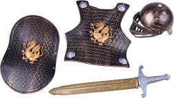 Nuovo set sensazionale per giovani cavalieri, ideale sia per il gioco che per le feste in maschera. Ogni bambino ama giocare a fare il cavaliere, il guerriero o l’eroe. Possiamo offrire un fantastico set per il piccolo gladiatore. Il set realistico piacerà a ogni cavaliere; è perfetto per giocare e per i balli in maschera.