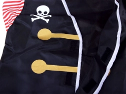 Il set include tutto ciò di cui un piccolo pirata ha bisogno: una spada in plastica sicura, un cannocchiale pieghevole per la “vedetta a bordo”, una benda sull'occhio e un cappello comodo. Il costume è progettato per facile vestizione e uso confortevole, così i bambini possono godersi ore di divertimento.
