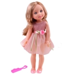 Una bambola elegante per ogni bambina, offrirà tanto divertimento positivo. La bambola alta 36 cm ha lunghi capelli biondi. È vestita con splendidi abiti da cocktail in tonalità chiare e ai piedi indossa sandali e calzini. La bambola è interamente realizzata in plastica, quindi rimane seduta in modo stabile. Ha braccia e gambe mobili. Con questo look alla moda puoi andare a un ballo o organizzare un tè.
