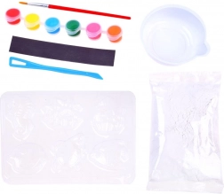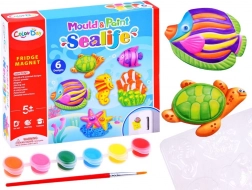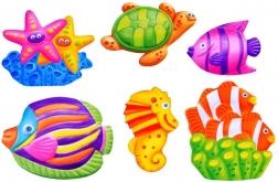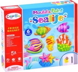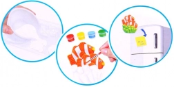 Il set creativo 'fai da te' per la creazione e pittura di magneti è un regalo ideale per bambini con animo artistico. Il set permette di creare 6 diversi magneti a tema creature sottomarine come pesci, cavalluccio marino, stelle marine e tartarughe. I bambini possono preparare calchi secondo la loro fantasia e poi colorarli.