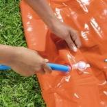 Installazione rapida e semplice. Basta srotolare lo scivolo sull'erba e collegare il tubo. Gli ancoraggi speciali assicurano che lo scivolo rimanga saldamente in posizione.