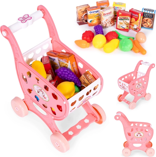 Il carrello della spesa giocattolo con un set di prodotti alimentari trasporta i più piccoli nell'affascinante ruolo di piccoli acquirenti e venditori. Questo set completo favorisce lo sviluppo delle abilità sociali e della creatività, offrendo ai bambini indimenticabili avventure nel mondo dello shopping.
