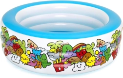 La piscina è decorata con vivaci disegni animati che attirano l'attenzione di ogni bambino e contribuiscono al suo aspetto giocoso.