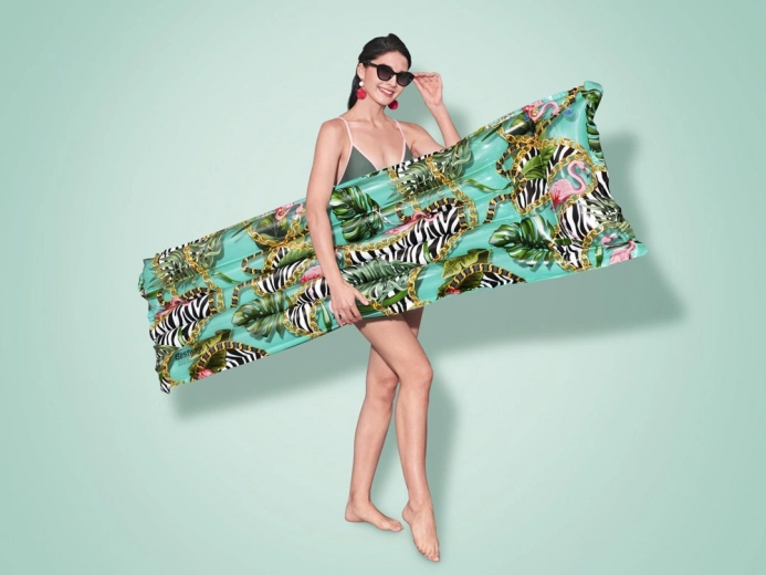 Questo elegante materassino gonfiabile con stampa tropicale è ideale per il relax in piscina e in vacanza. Grazie al resistente materiale in PVC e al design studiato con più camere d’aria offre ottimo galleggiamento, comfort e lunga durata.