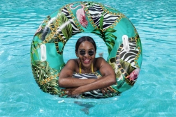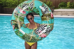Goditi l’estate con la comoda ciambella galleggiante BESTWAY dal diametro di 114 cm. Robusto materiale in PVC, due maniglie solide per una presa sicura e stilosa fantasia di palme che piacerà ai teenager dai 12 anni in su e agli adulti. Ideale per piscina, lago e mare, si gonfia e sgonfia facilmente e include anche una pezza di riparazione.