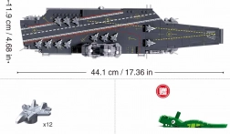 Sulla terra, in acqua, in aria. Dominate lo spazio! La nave, con la sua lunghezza di 44,1 centimetri, offre un'ampia gamma di possibilità di gioco. Le piste di atterraggio possono essere utilizzate da 12 aeromobili inclusi nella confezione. L'innovativo set di costruzione Sluban può essere combinato con set simili di molti altri importanti produttori. Sono realizzati in plastica ABS di alta qualità, sicura e resistente. Ogni set è dotato di istruzioni di montaggio ed è confezionato in una scatola di cartone variopinta stampata.