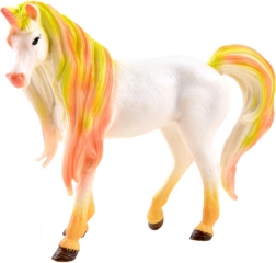 Figurina bianca con criniera e coda sfumate nei toni del rosa, giallo e arancione: cattura l’attenzione e illumina ogni gioco.