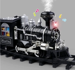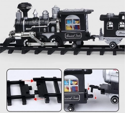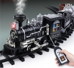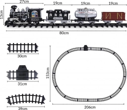 Questo eccellente modello di set treno è dotato di telecomando e offre uno spettacolare movimento avanti e indietro. La locomotiva si illumina ed emette fumo dal camino, aggiungendo autenticità al viaggio. Gli effetti sonori simulano suoni realistici di treno come fischi, battito delle ruote sui binari e campanelli. Il modello è un regalo ideale per tutti gli appassionati di set treno.