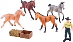 Nella confezione trovi la figura del contadino, quattro adorabili puledrini, elementi per il recinto, una mangiatoia e un balla di fieno: tutto il necessario per creare una scena di fattoria completa. Ideale come regalo per compleanni e festività, supporta creatività, gioco di ruolo e conoscenze sulla vita di campagna.