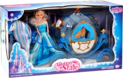 Questo bellissimo set di gioco è ispirato all'amatissima fiaba di Cenerentola e sicuramente farà felici tutte le piccole principesse. Il set comprende una bambola con vestito a ballo blu, una carrozza e un cavallo.