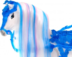 Il cavallino non solo cammina in avanti, ma emette anche suoni di nitrito. La sua bella criniera e la bardatura stilosa lo rendono un irresistibile compagno per la bambola.