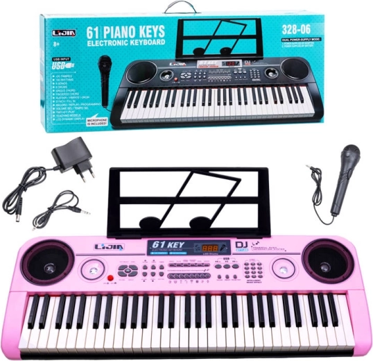 Strumento a tastiera elettronica 61 tasti con microfono e USB – Rosa