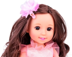 Elegante bambola alta 36 cm che farà felici le piccole principesse alle feste e all'ora del tè. Ha lunghi capelli scuri pettinabili con fermaglio floreale, indossa un abito rosa con tulle e farfalline e ai piedi ballerine rimovibili con fiocchetti. Stimola lo sviluppo dell'immaginazione, della creatività e delle abilità sociali ed è ideale per bambini dai 3 anni.