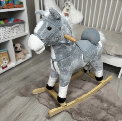 Il design elegante grigio e bianco e il peluche soffice rendono il cavallo a dondolo un bellissimo complemento per la cameretta e un gioco preferito di ogni giorno. Le robuste slitte in legno assicurano un movimento fluido e sicuro, mentre maniglie e staffe aiutano i bambini a mantenere la stabilità. La sella confortevole invita a lunghi dondolii e a spedizioni di fantasia.