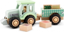 Questo bellissimo set include un trattore in delicata tonalità di verde, un rimorchio removibile e quattro blocchi di legno stampati con pomodori, melanzane, carote e broccoli. I bambini possono caricare, trasportare e scaricare la verdura, allenare la coordinazione occhio-mano ed esplorare il mondo della fattoria.