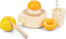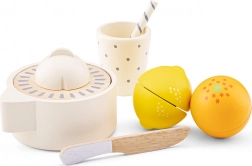 Lo spremiagrumi in legno è il complemento perfetto per ogni cucinetta dei bambini a partire dai 3 anni e porta nel gioco non solo divertimento, ma anche opportunità di apprendimento e sviluppo delle abilità. Il set include un’arancia e un limone realistici, divisi a metà con il velcro, che i bambini possono facilmente tagliare con il coltello in legno in dotazione. I bambini allenano la motricità fine mentre dividono la frutta e poi la spremono nello spremiagrumi. Basta premere o ruotare e il bambino si sentirà come in una vera cucina. Quando si ruota la frutta nello spremiagrumi si può sentire un lieve clic. La bevanda pronta può essere servita nel bicchiere con cannuccia.