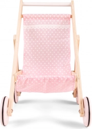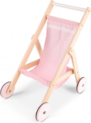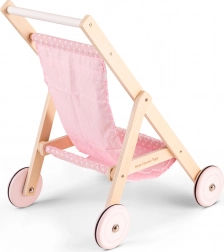 Questa carrozzina in legno dal design elegante unisce la resistenza del materiale naturale a delicati dettagli tessili rosa. È stabile, facile da manovrare e, grazie agli anelli in gomma sulle ruote, lo scorrimento è molto silenzioso: ideale per appartamenti e camerette. L’altezza del manico di 50 cm garantisce una spinta comoda per i bambini in età prescolare.