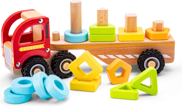 Con il camion, dotato di rimorchio staccabile, i bambini possono divertirsi a impilare e classificare. Grazie al materiale resistente, il giocattolo sopporta anche una manipolazione più intensa nelle mani dei bambini.