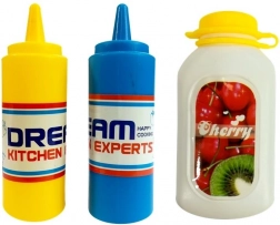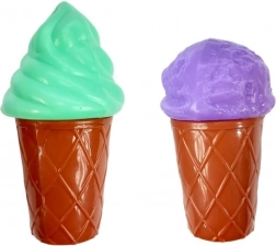 Due gelati colorati e tre boccette con “salse” stimolano la fantasia dei bambini nella fase di condimento e servizio.